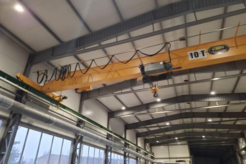 Crane NTP is also a manufacturer of overhead travelling cranes. This is a type of crane that travels on tracks mounted on the upper parts of the hall structure (e.g. on support beams). This type of crane is one of the most commonly used lifting devices in industry, enabling loads to be lifted and transported vertically and horizontally in large spaces.