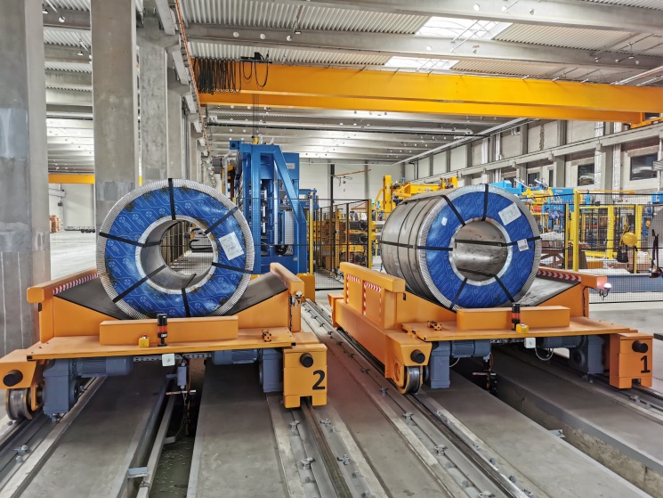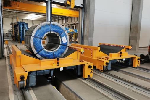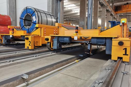 Wózki przeznaczone do przewozu rolek blachy dostarczone do firmy z Płocka.